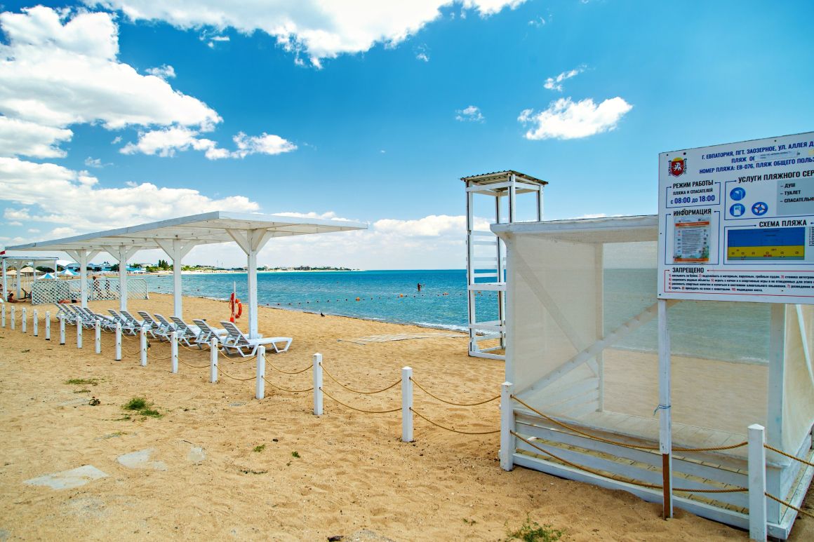 Пляж лагеря находится на первой береговой линии и оборудован всем необходимым для комфортного отдыха. Здесь есть навесы, кабинки для переодевания и медицинский пост.