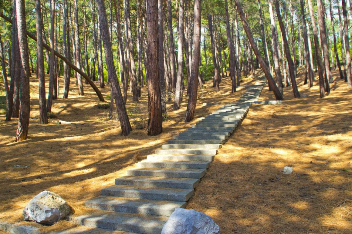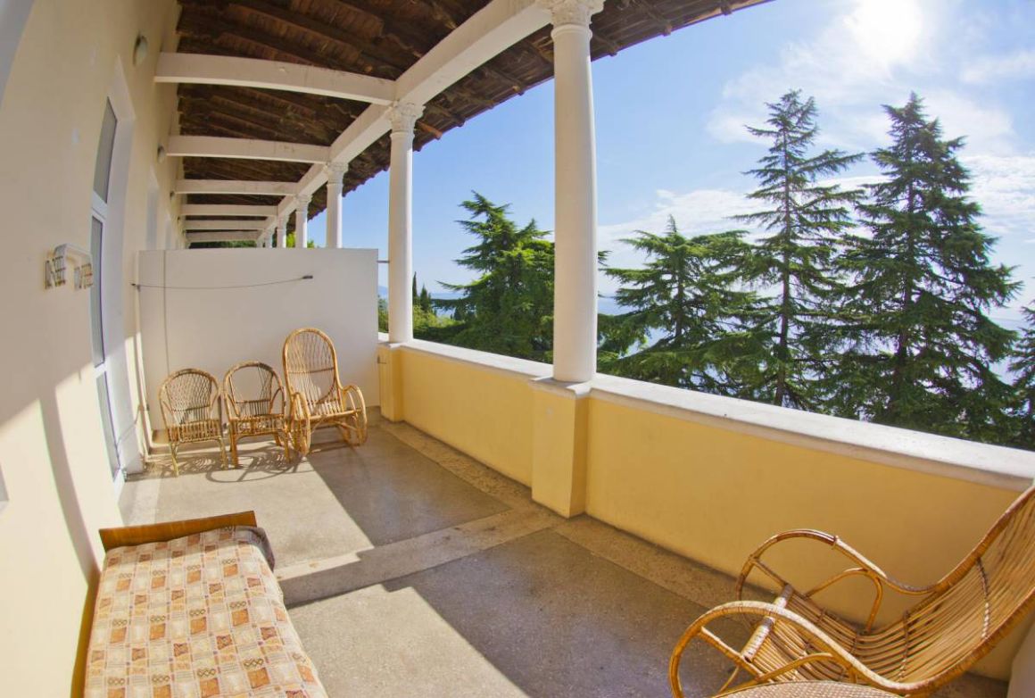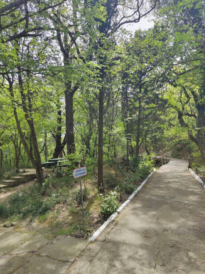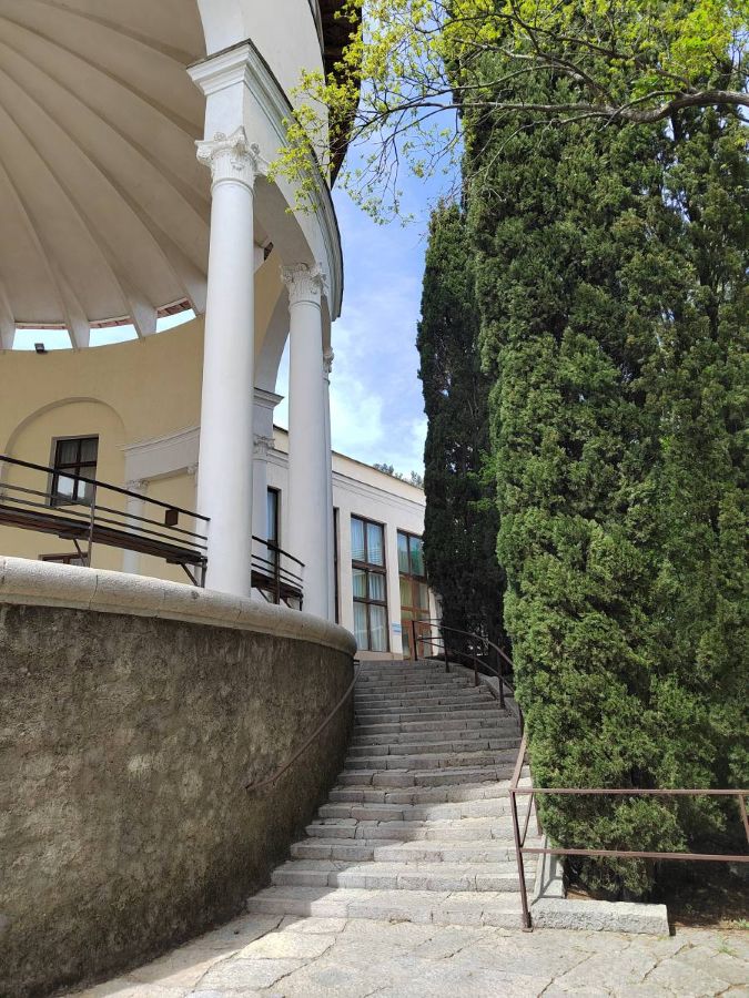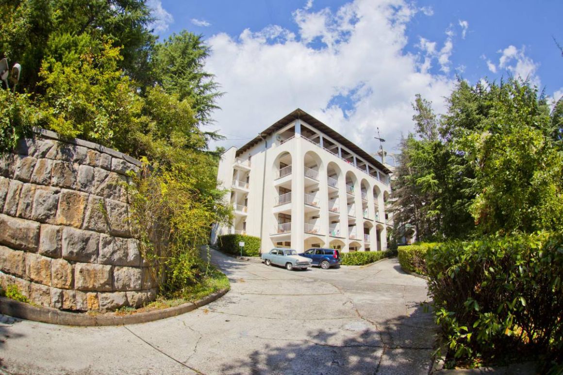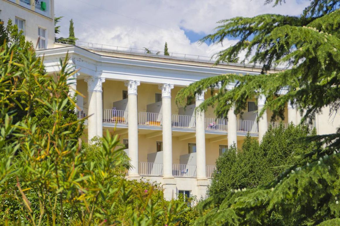 Белоснежные корпуса выделяются среди сочной зелени хвойно-лиственного большого парка, где растут субтропические растения. Отдыхающие могут гулять по тенистым аллеям, дорожкам для терренкуров, посидеть в уголках отдыха и на благоустроенных площадках. Знаменитая Царская (Солнечная) тропа через лес доведёт до Ливадийского дворца.