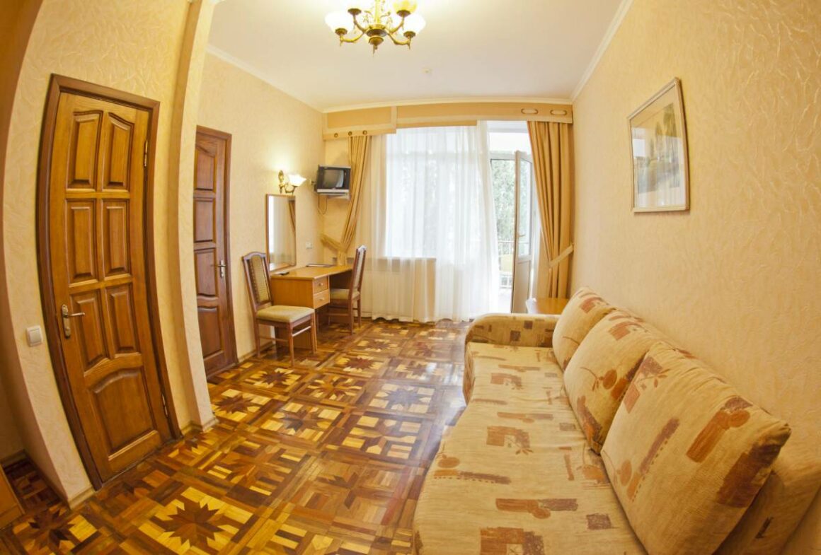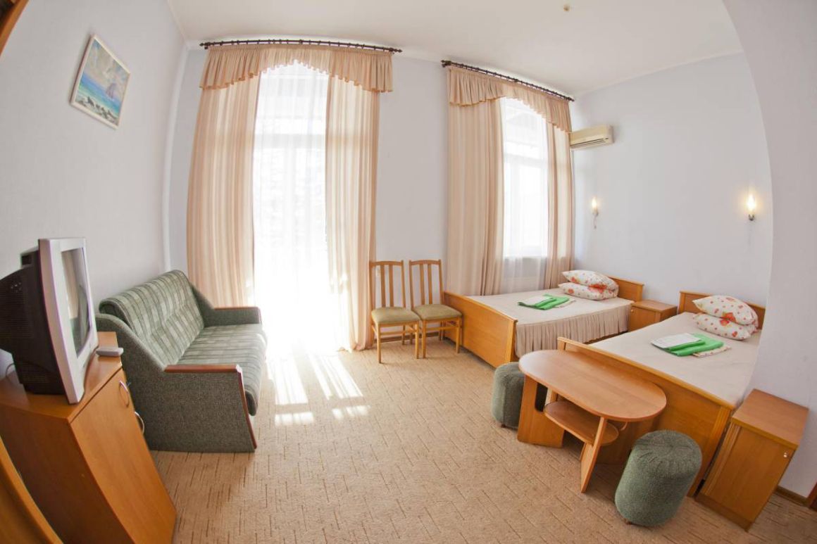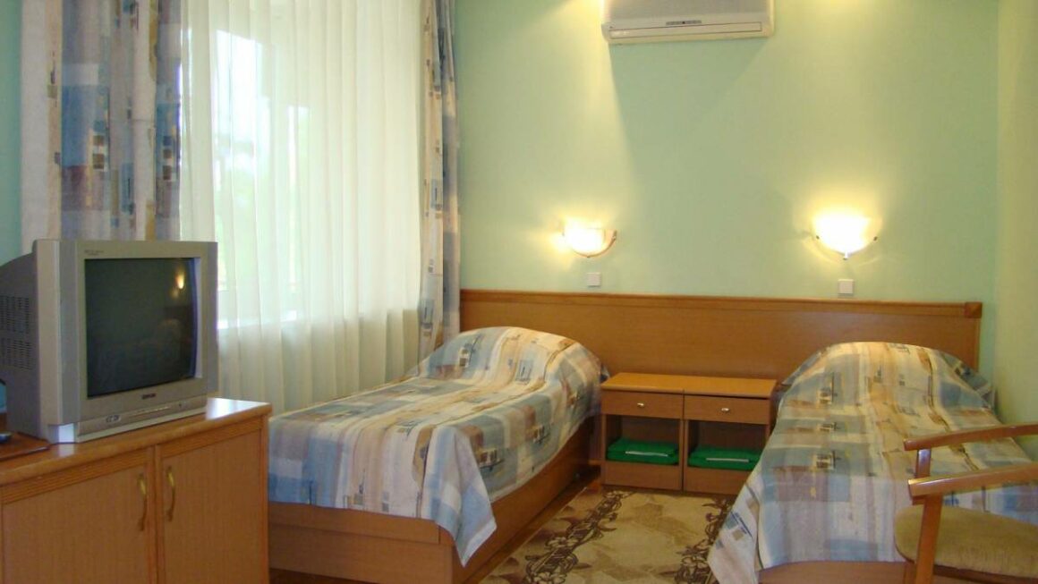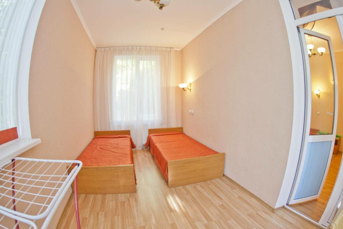 - Корпус № 5 – 4-этажное здание, 2-е по размеру в здравнице. От него 5 минут ходьбы до столовой, 10 минут до подвесной канатной дороги. На 1-м и 2-м этажах разместились медицинские кабинеты, а жилые номера на всех 4-х этажах.