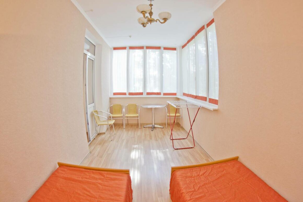 - Корпус №4 – это 2-этажное здание. Каждый номер имеет отдельный вход. На первом этаже номера без балконов, попасть в них можно, минуя небольшую террасу.
