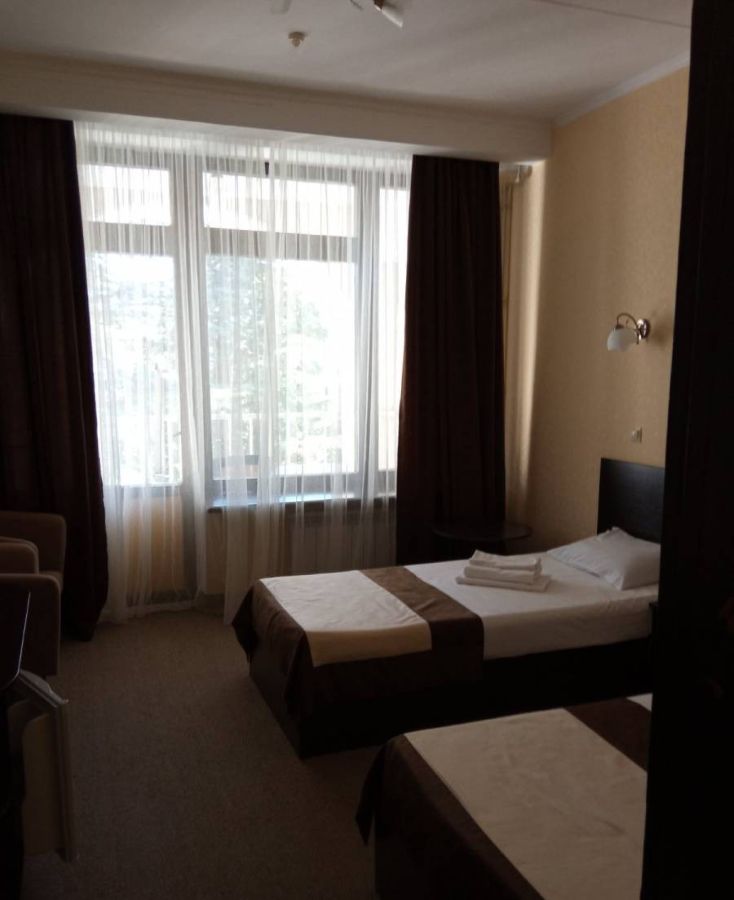 - Корпус №2 - это 3-этажное здание. От него 5 минут ходьбы до столовой, 7 минут до фуникулера и 5 минут до административного здания. Этот корпус находится ближе других к крытому бассейну и сосновому бору. На верхнем этаже размещаются 2 конференц-зала на 40 и 20 мест, а на 1-м и 2-м этажах расположены номера с балконами. Все они оборудованы душевыми кабинами, в 2-местных номерах с видом на север установлены ванны.