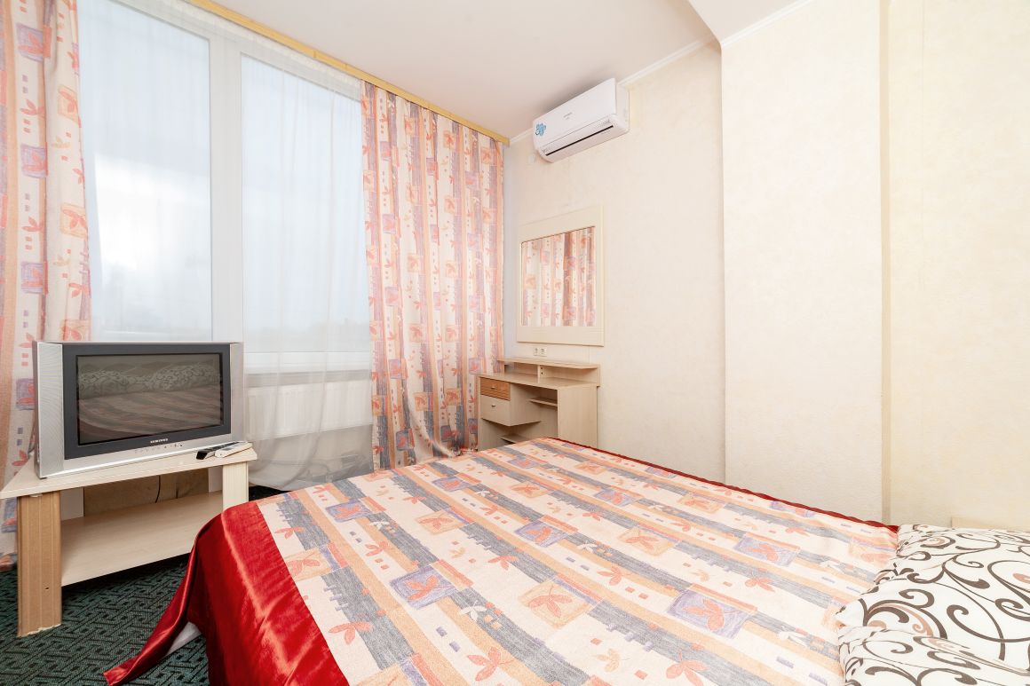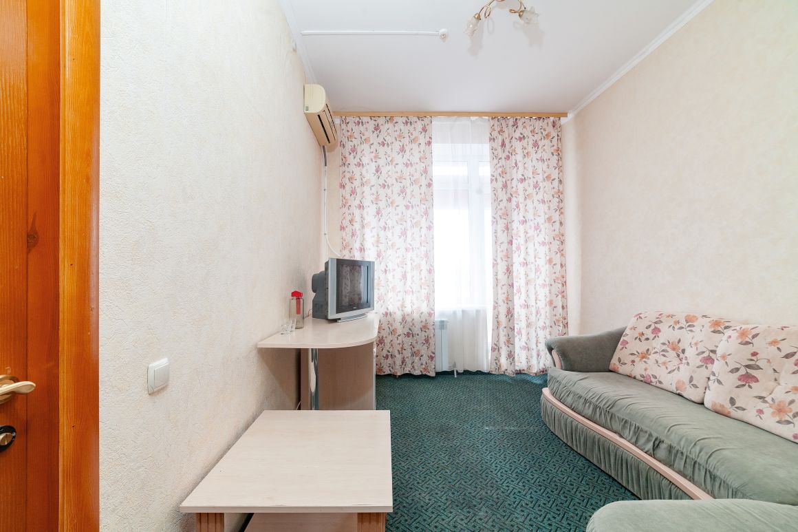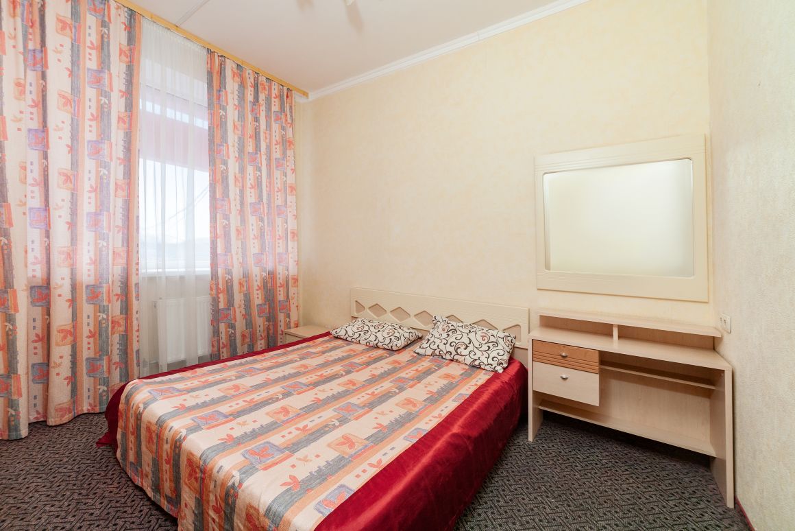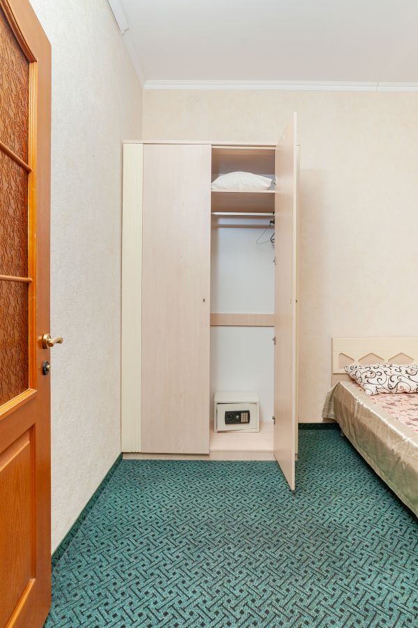 В номере: сан.узел (умывальник, туалет, душевая кабинка), стол, шкаф для одежды с вешалками, телевизор, холодильник, кондиционер; кресло или стулья, кровати, прикроватные тумбы, графин со стаканами. Дополнительное место – не предусмотрено. Все номера отличаются друг от друга (площадью, интерьером)