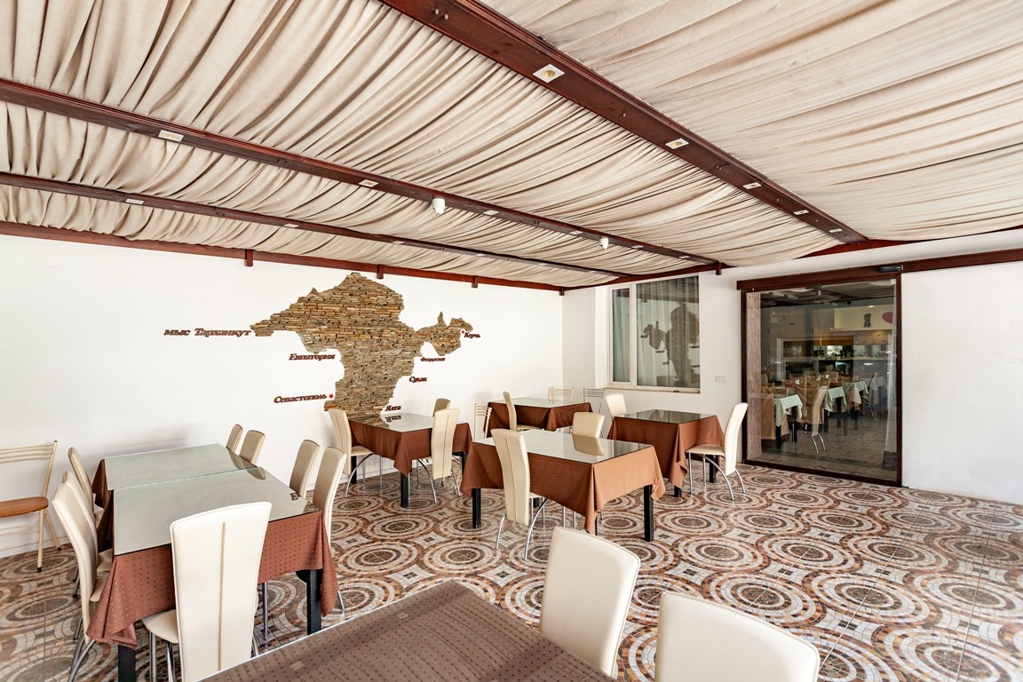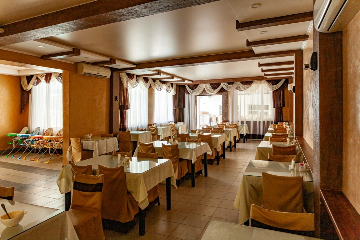 Собственное кафе на территории отеля. Кафе рассчитано на 60 посадочных мест единоразово.