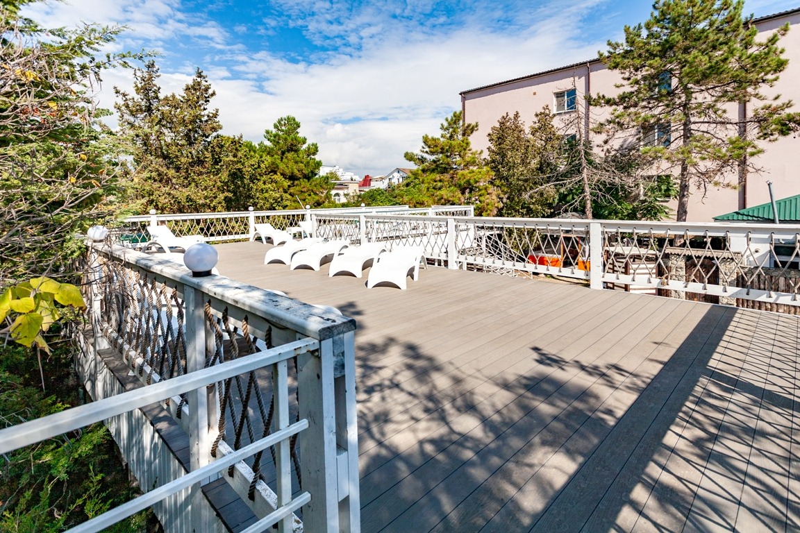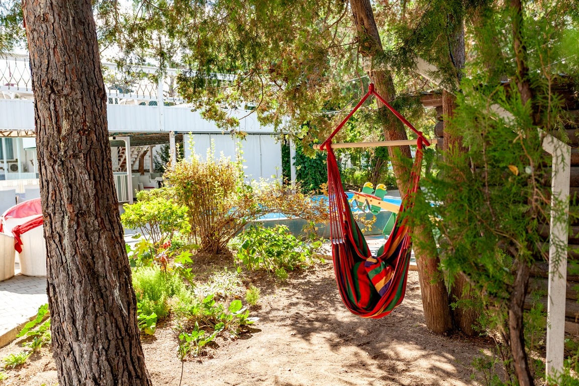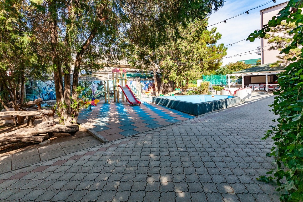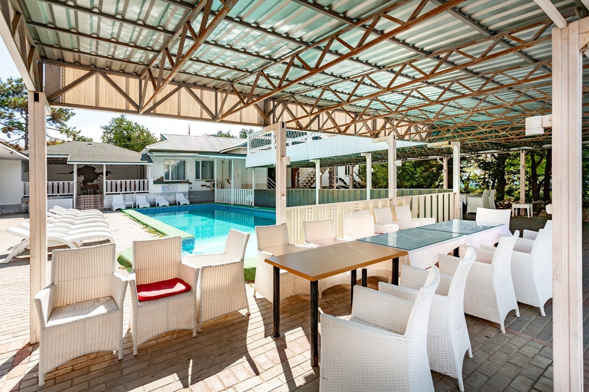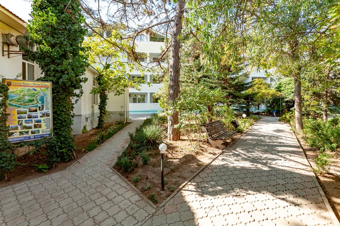 Территория пансионата охраняется круглосуточно. Во дворике есть «зеленая» зона с беседками и мангалом. Гости свободно могут пользоваться инвентарем: готовить шашлык, барбекю, блюда на гриле.