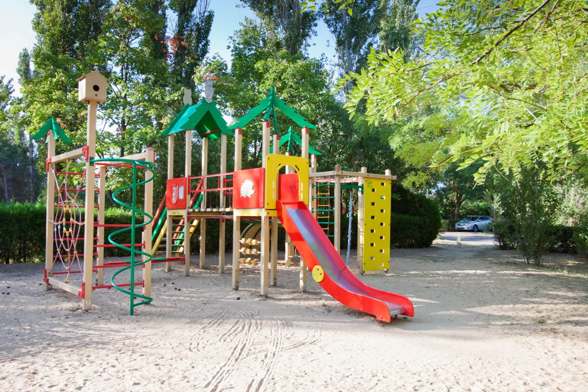 - открытый бассейн с пресной водой (глубина 0,6-1,5 м, длина 55,2 м, ширина 10,2 м, единовременная вместимость 120 человек, территория возле бассейна оборудована теневыми навесами, лежаками, санузлом, питьевыми фонтанчиками)
