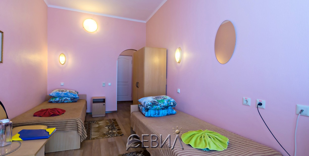 - Корпус №1 (Летний корпус, 2 этажа, без лифта, отдельный вход в каждый номер). Расстояние до пляжа: 150 м.