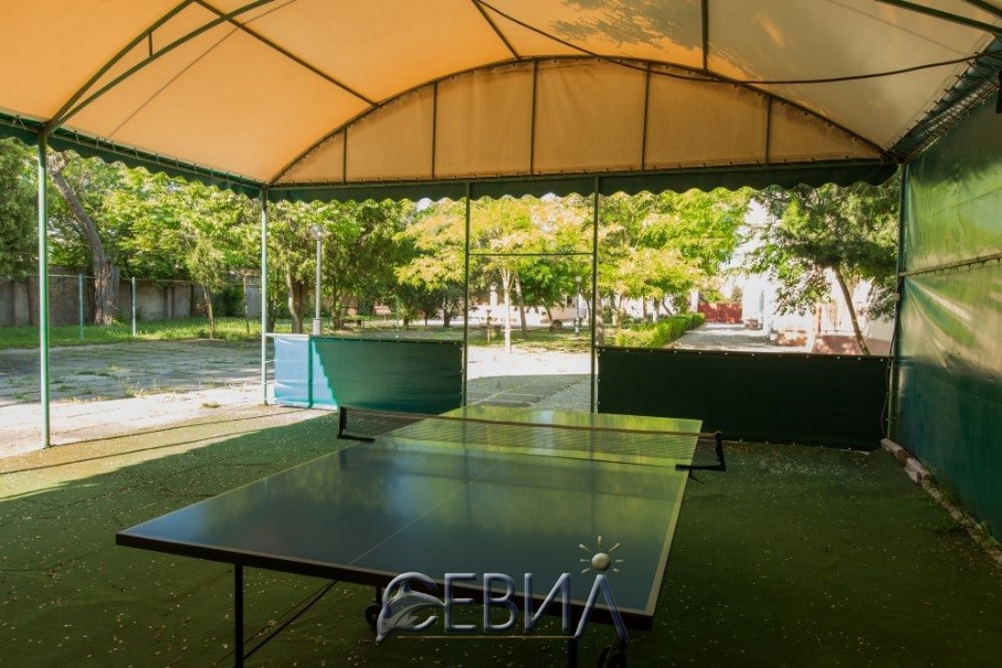 - Любители активного отдыха могут размяться, играя в настольный теннис. Маленьких гостей пансионата ждет детская площадка.