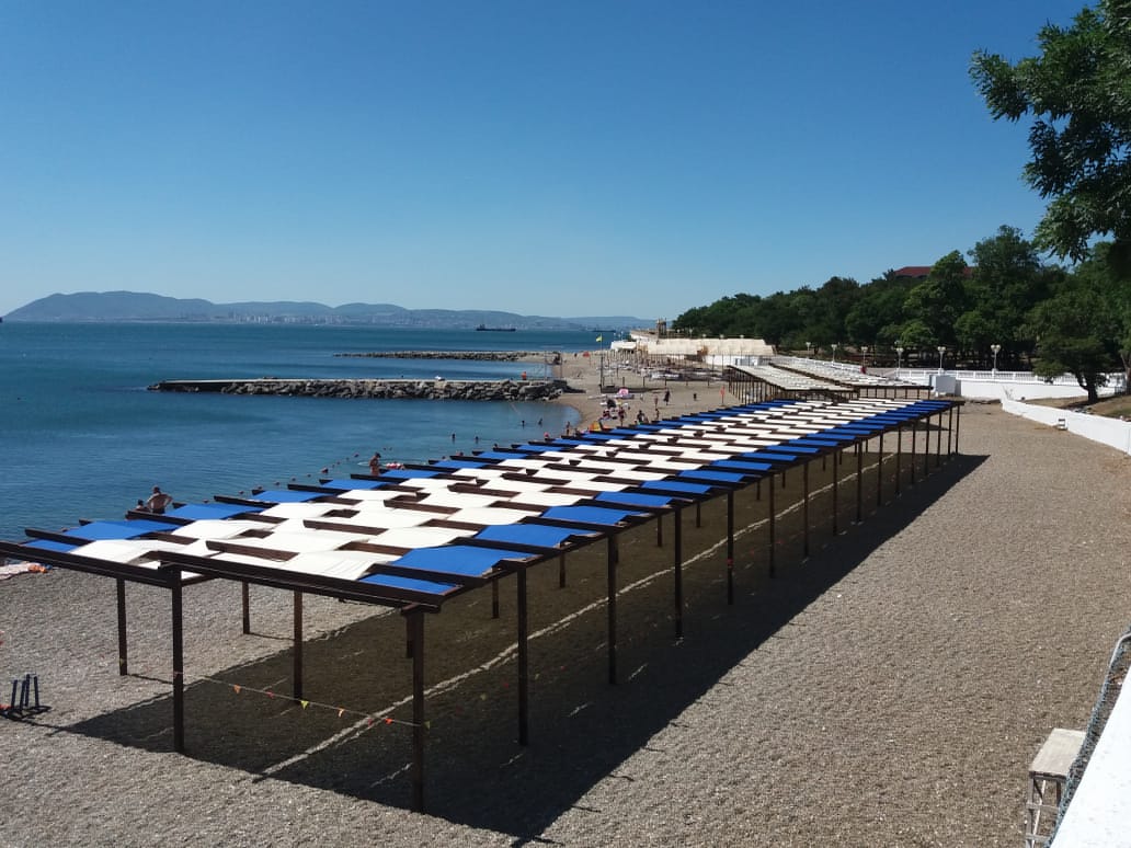 Собственный галечный пляж расположен в 150 м от центра. Пляж оборудован медицинским и спасательным пунктом, раздевалками, теневыми навесами, стационарными туалетами.