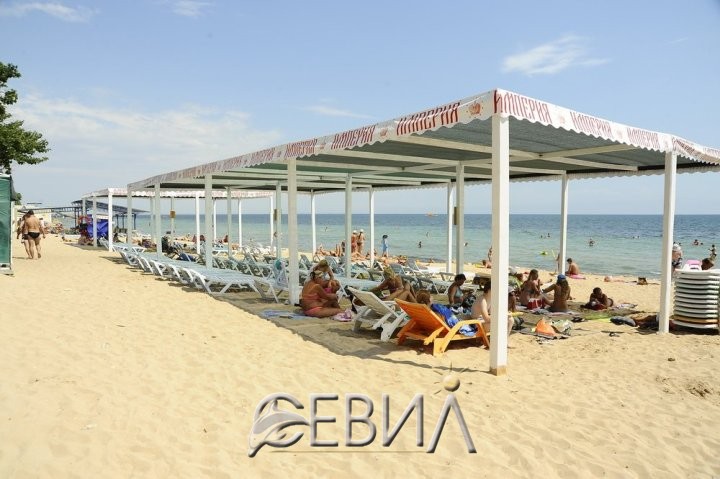 Собственный пляж, находится в 7 минутах пешей прогулки от пансионата. Пляж оборудован всем неоходимым для отдыха: навесы от солнца, душевые, шезлонги и кабинки для переодевания, туалет. Спасательная служба и медпост обеспечивают безопасность находящихся на пляже. Пляж песчаный широкий, площадь 1500 кв.м, вход в море удобный и безопасный.