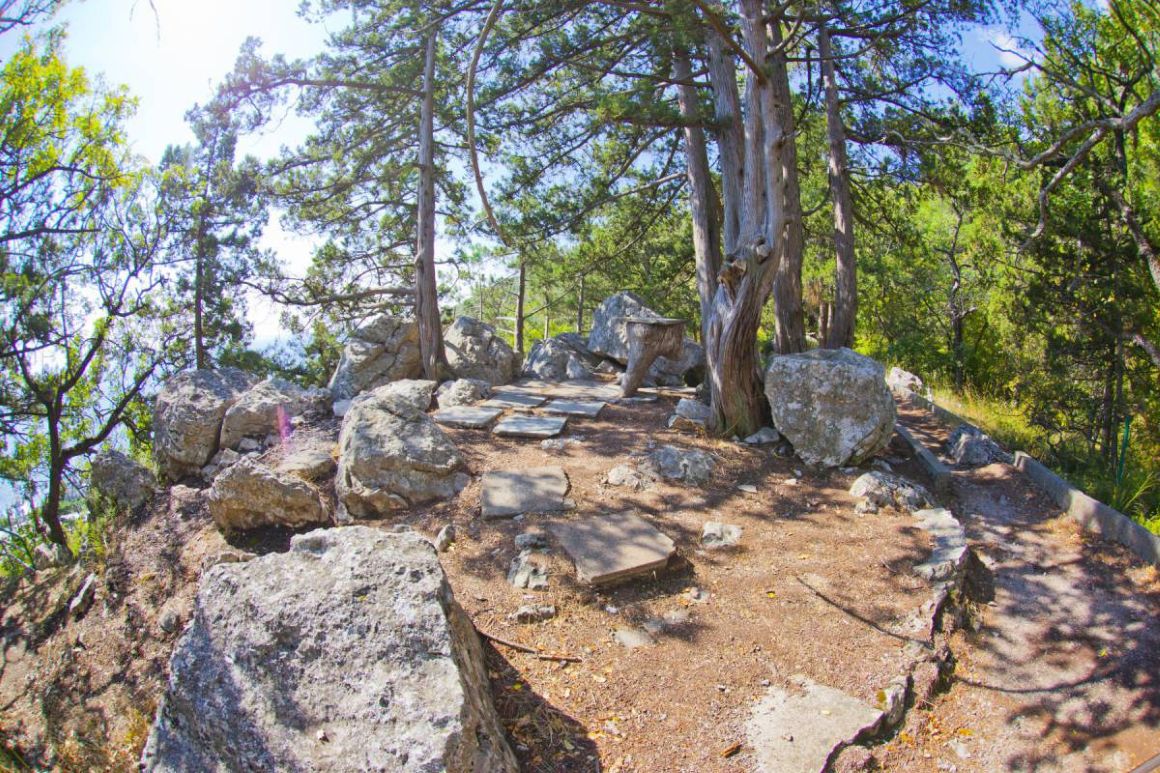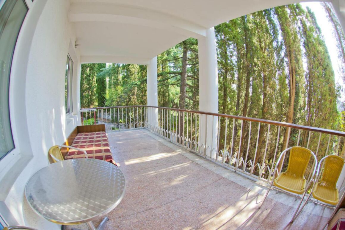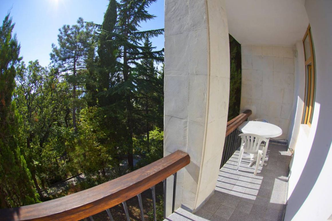 Белоснежные корпуса выделяются среди сочной зелени хвойно-лиственного большого парка, где растут субтропические растения. Отдыхающие могут гулять по тенистым аллеям, дорожкам для терренкуров, посидеть в уголках отдыха и на благоустроенных площадках. Знаменитая Царская (Солнечная) тропа через лес доведёт до Ливадийского дворца.