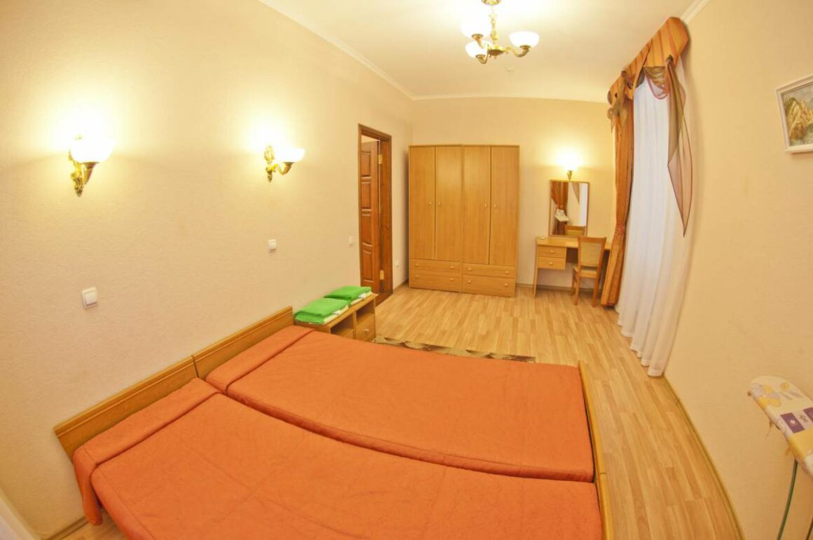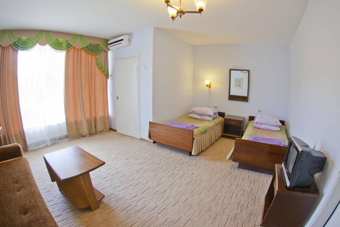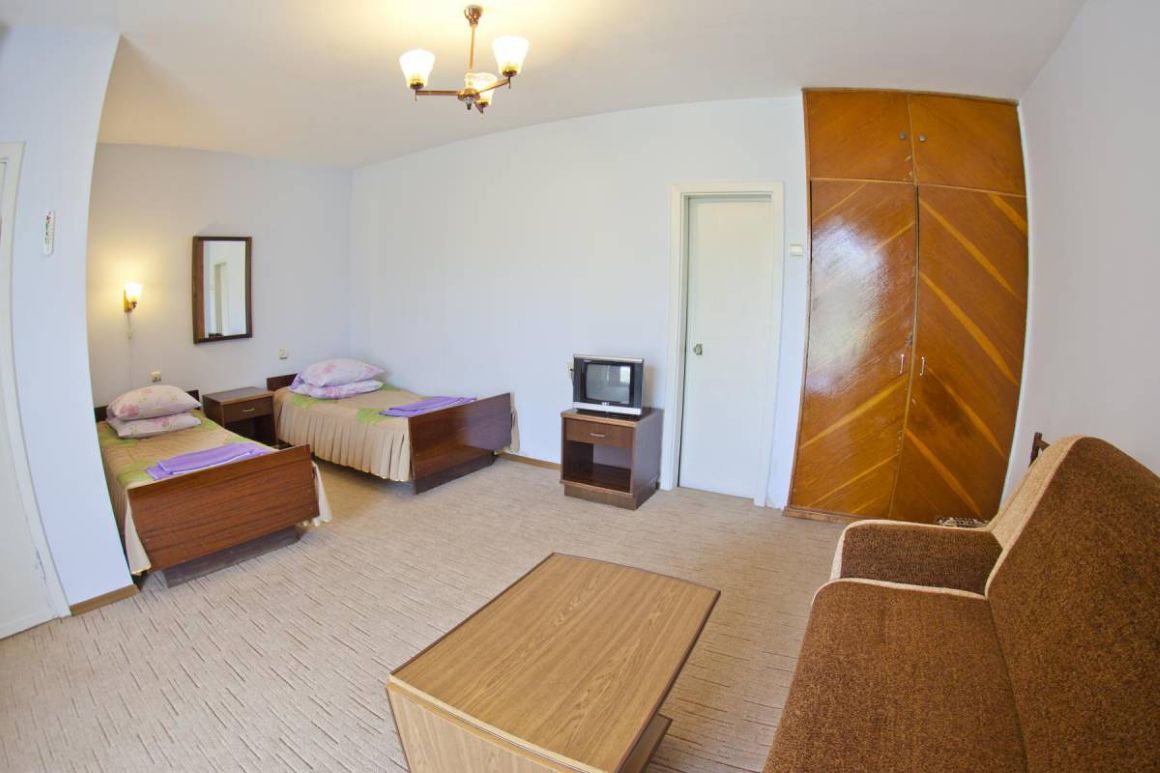 - Корпус № 5 – 4-этажное здание, 2-е по размеру в здравнице. От него 5 минут ходьбы до столовой, 10 минут до подвесной канатной дороги. На 1-м и 2-м этажах разместились медицинские кабинеты, а жилые номера на всех 4-х этажах.