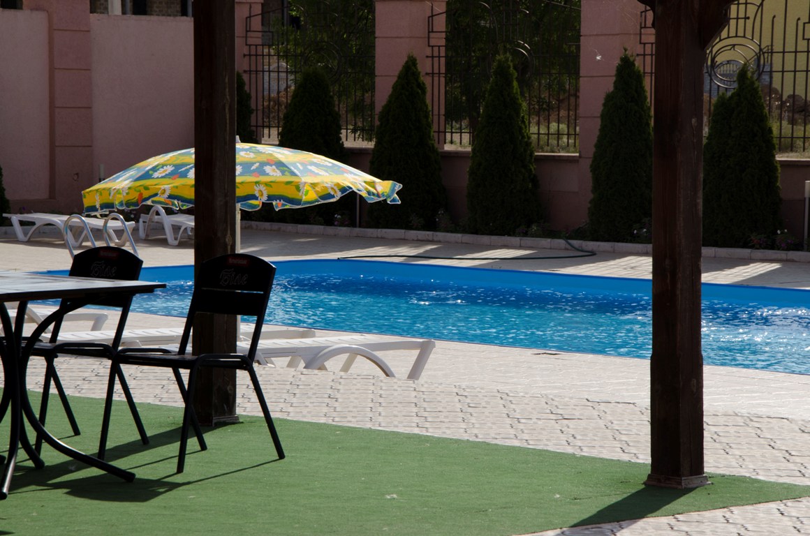 • Два открытых летних различных по площади и глубине бассейна с пресной водой, оборудованных шезлонгами и зонтами (бесплатно для гостей);