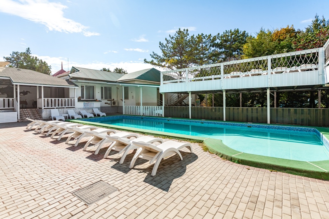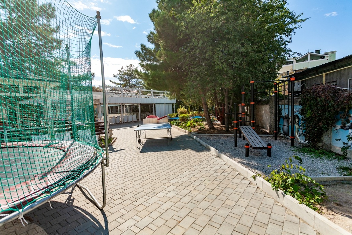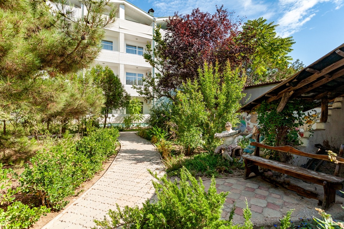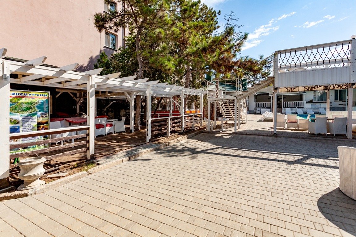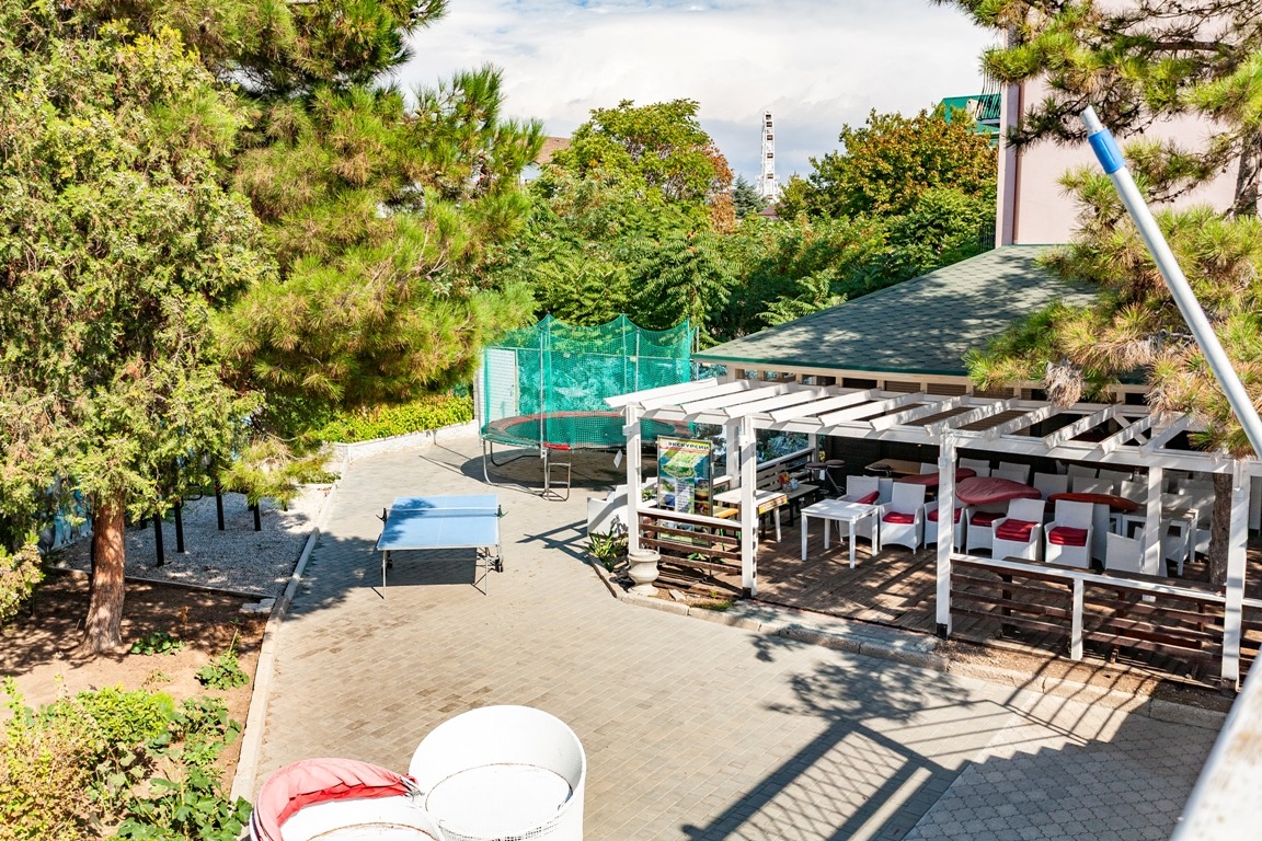 Территория пансионата охраняется круглосуточно. Во дворике есть «зеленая» зона с беседками и мангалом. Гости свободно могут пользоваться инвентарем: готовить шашлык, барбекю, блюда на гриле.