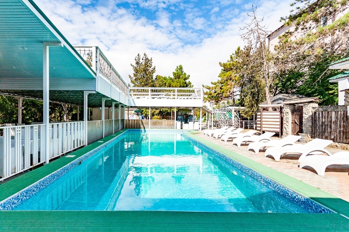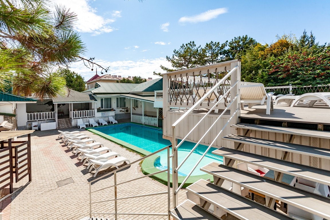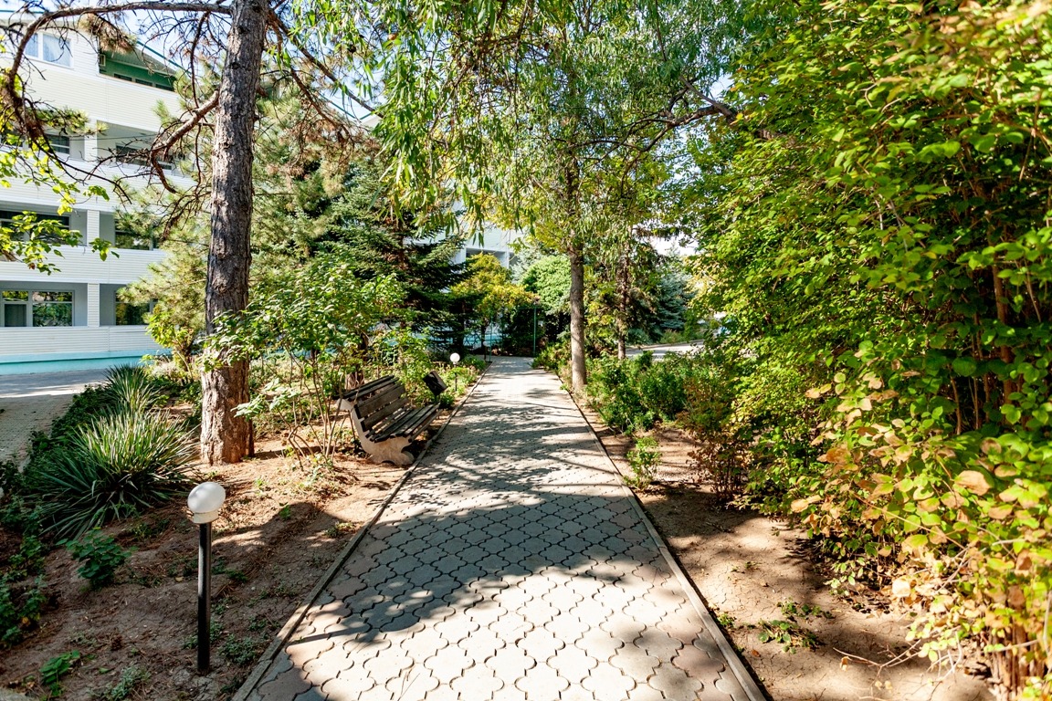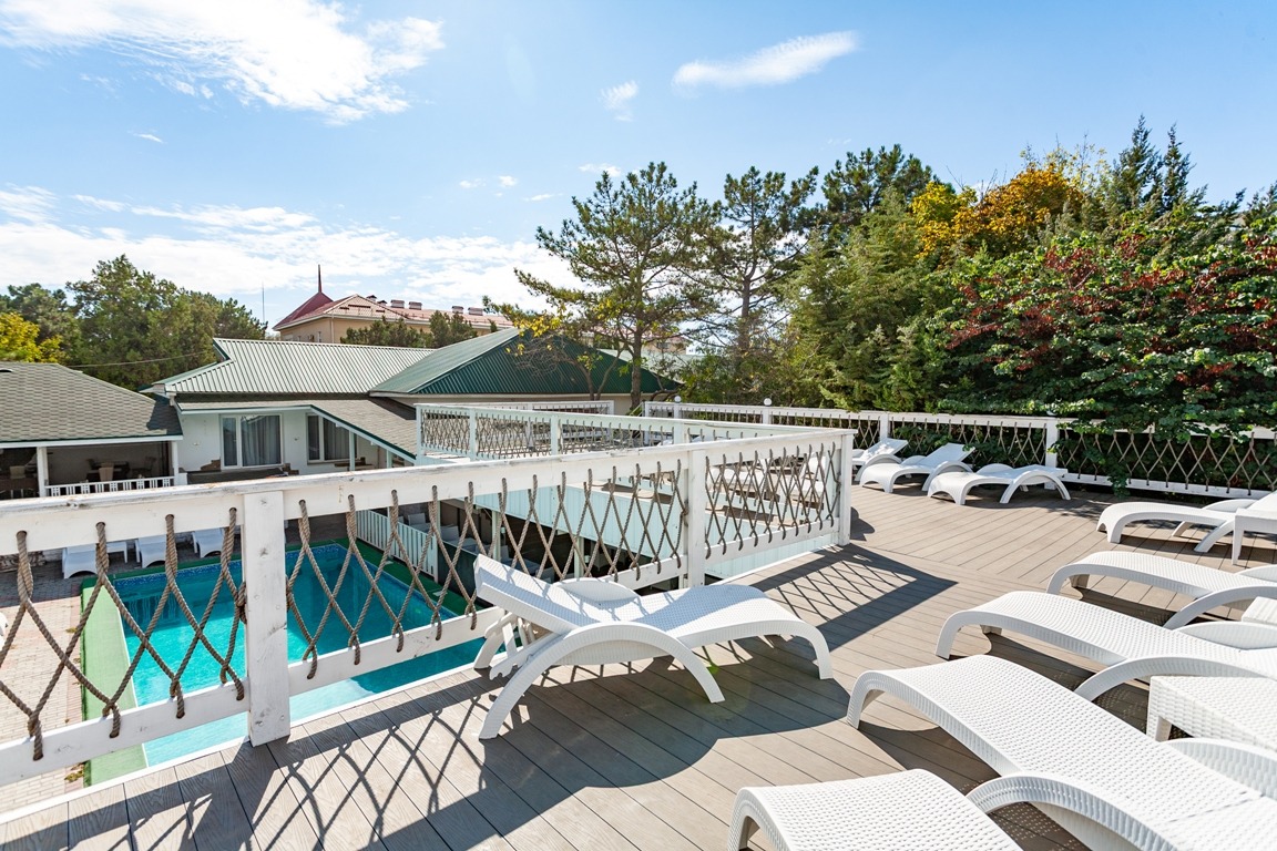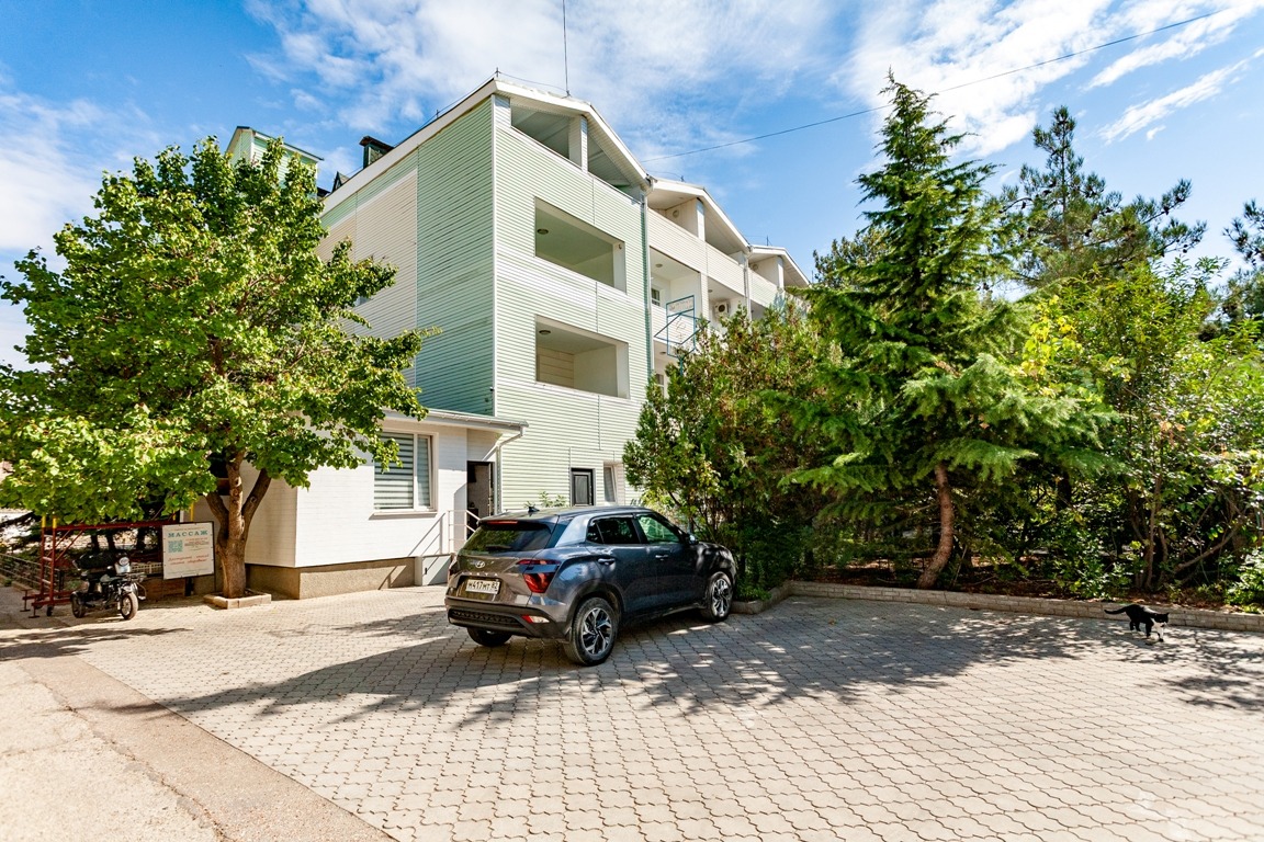 Территория пансионата охраняется круглосуточно. Во дворике есть «зеленая» зона с беседками и мангалом. Гости свободно могут пользоваться инвентарем: готовить шашлык, барбекю, блюда на гриле.