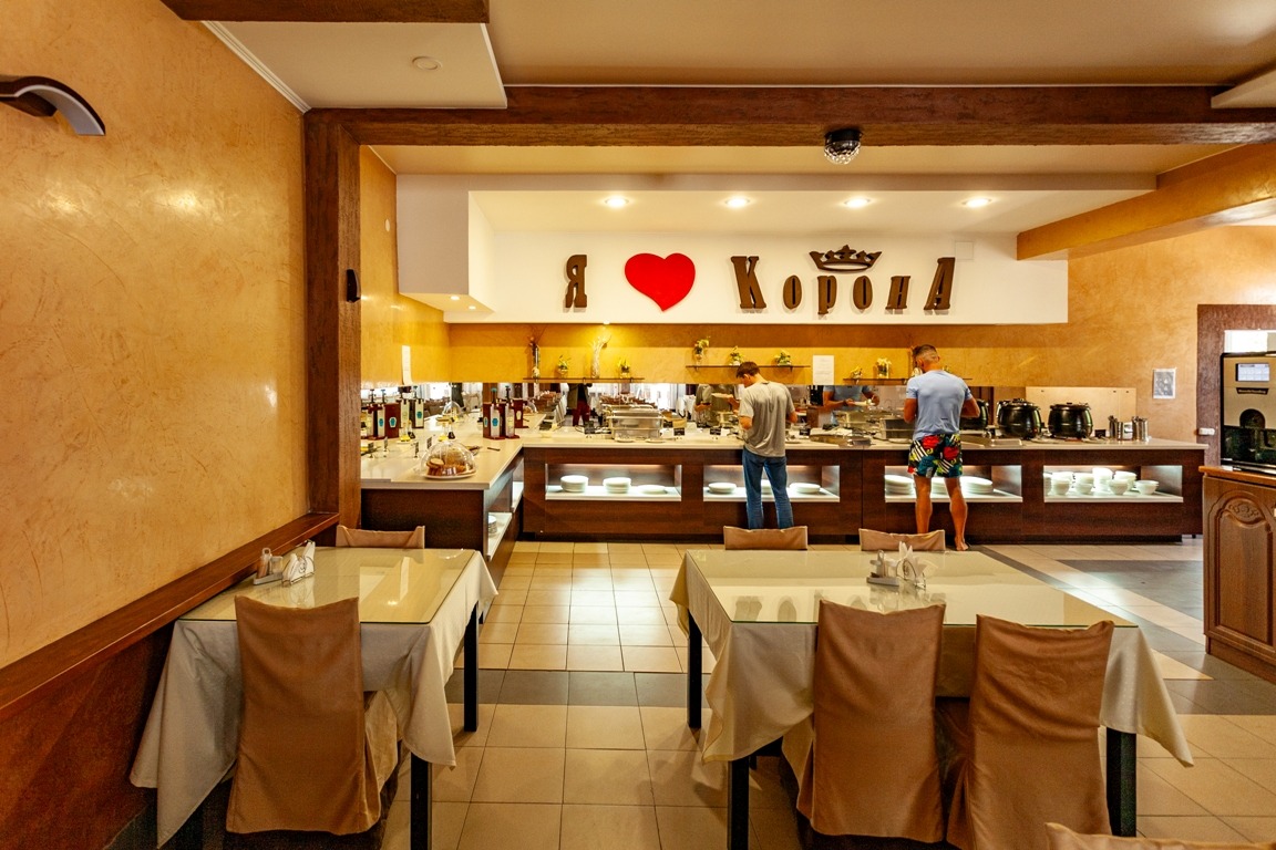 На территории гостей ждет ежедневная программа досуга: настольные и активные игры, конкурсы, развлечения, турниры для детей и взрослых. Организовать время, свободное от пляжа, купания в море и экскурсий, позволит инфраструктура «Короны». Она включает: