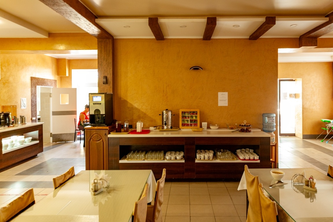 Собственное кафе на территории отеля. Кафе рассчитано на 60 посадочных мест единоразово.