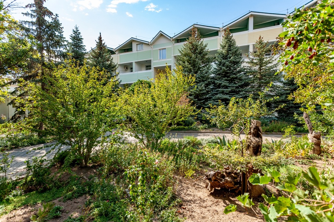 Площадь территории пансионата «Корона» составляет 0,8 га.