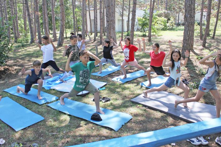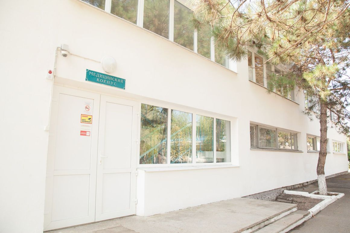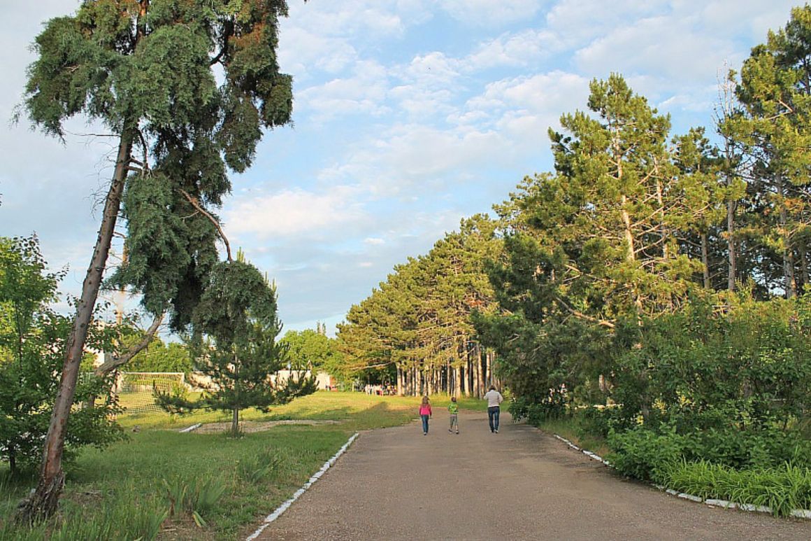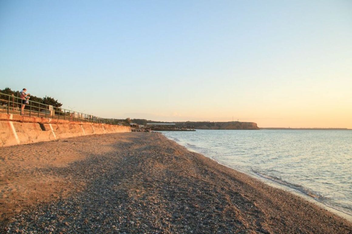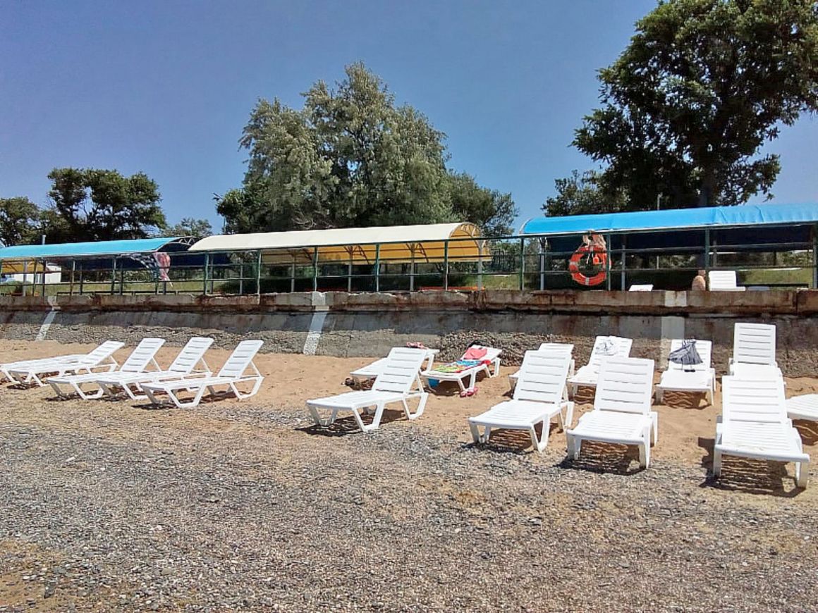 Собственный 200-метровый песчано-галечный в 70 м от лагеря. Оборудован теневыми навесами, питьевыми фонтанчиками, кабинками для переодевания, душем, туалетом, ногомойками, площадкой для занятий спортом.