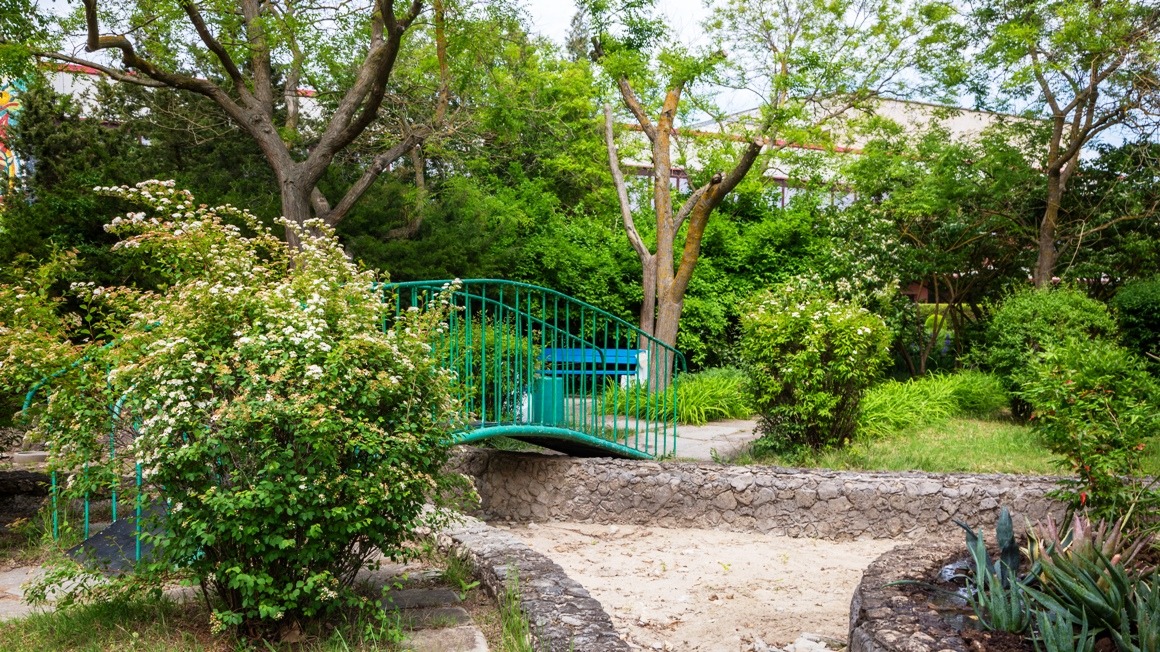 конференц-залы, спортплощадки, собственный благоустроенный пляж.