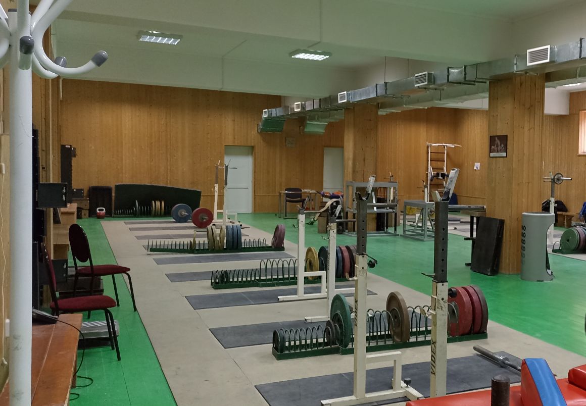 - Зал тяжелой атлетики (11 помостов ELEIKO, 2 соревновательных и 3 разминочных помоста).