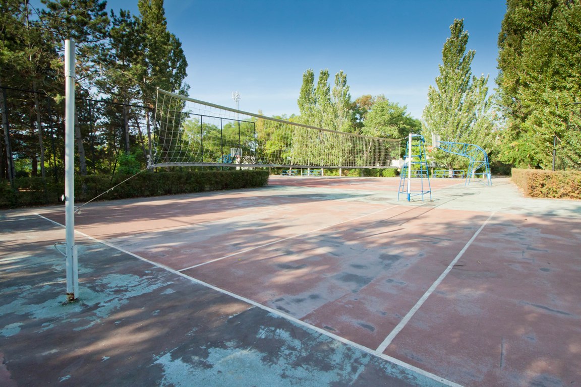 - открытый бассейн с пресной водой (глубина 0,6-1,5 м, длина 55,2 м, ширина 10,2 м, единовременная вместимость 120 человек, территория возле бассейна оборудована теневыми навесами, лежаками, санузлом, питьевыми фонтанчиками)