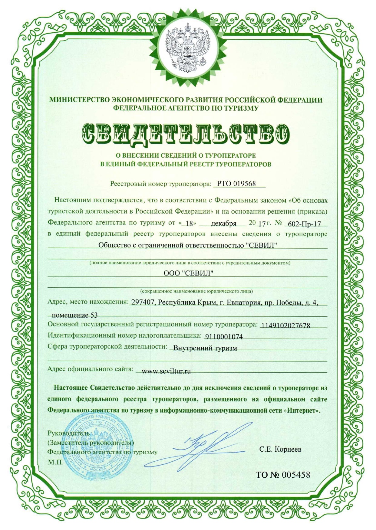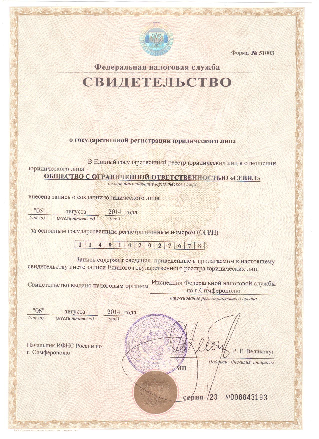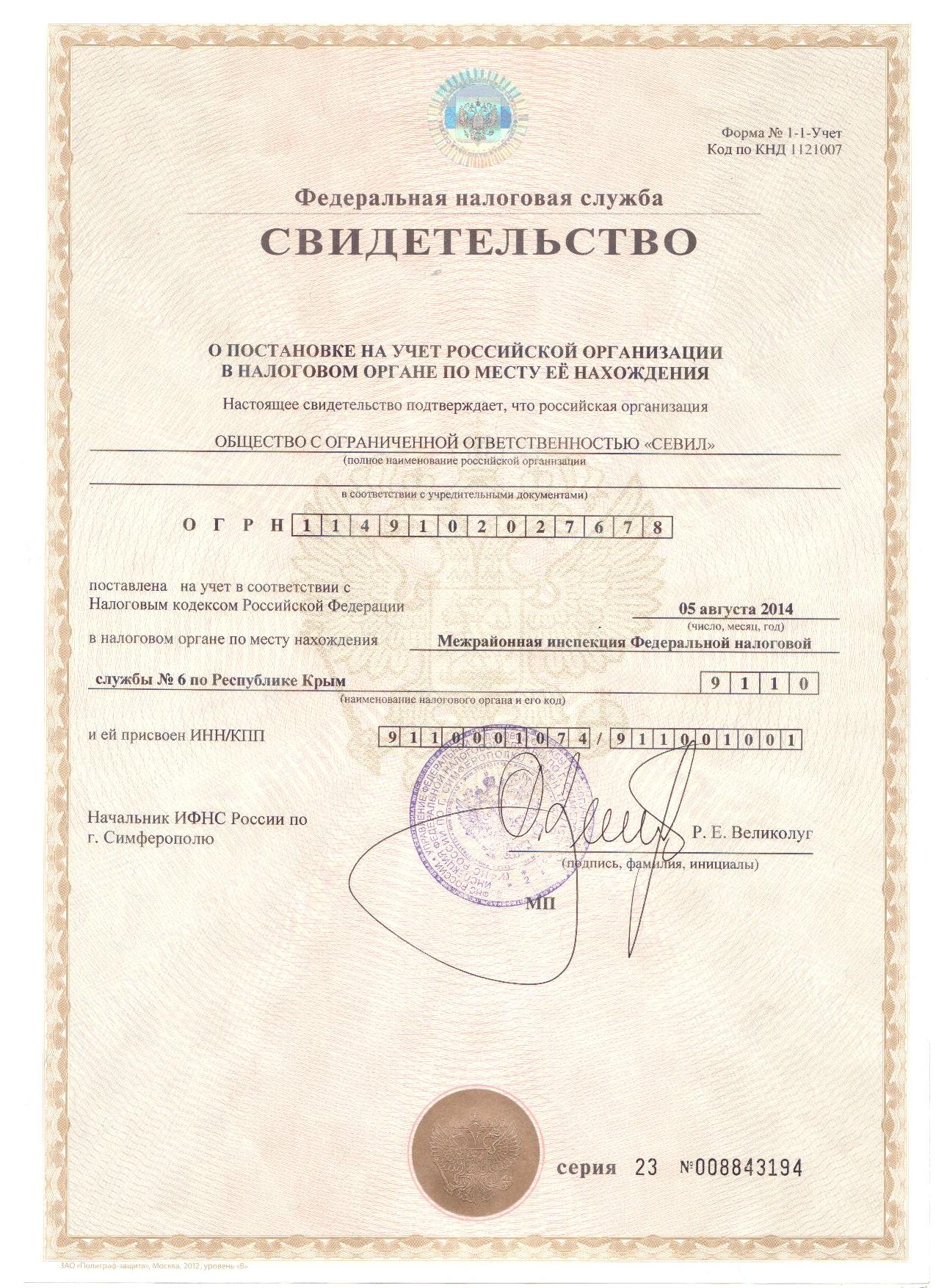 ООО "Севил" ИНН 9110001074, ОГРН 1149102027678